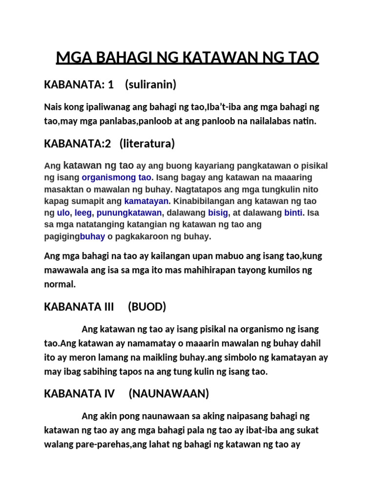 Bahagi ng Katawan Fil Eng Author. Tungkol sa kanilang mahahalagang istrakturang pisikal bahagi ng katawan ng tao ay ang mga sumusunod. Sa bahagi ng katawan tulad ng ulo mata bibig kamay paa at iba pa lagyan ng tungkuling nararapat mong gawin sa pamilya paaralan barangaypamayanan o lipunanbansa.